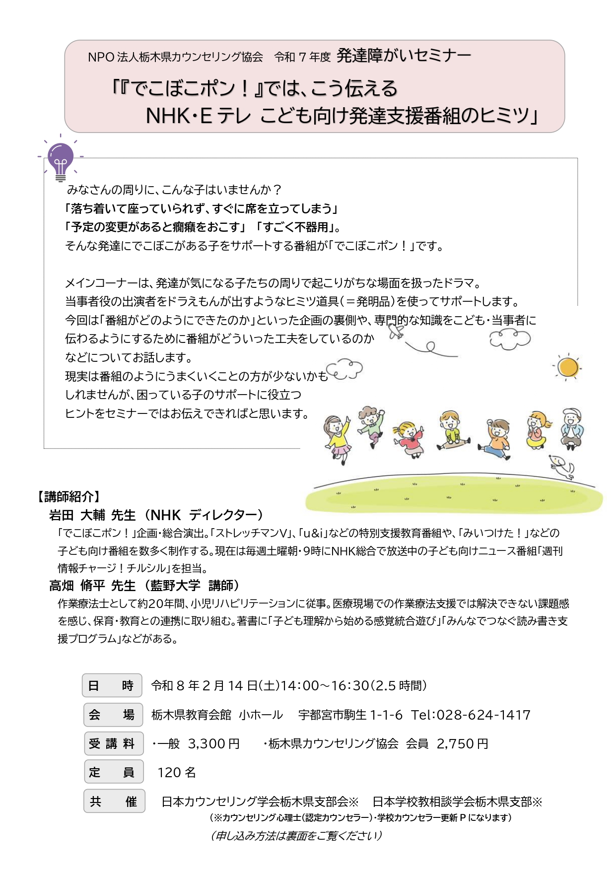 2025.12.20 令和7年度発達障がいセミナーのご案内 資料のPDFはこちらから →令和7年度発達障がいセミナー « 前の記事へ 次の記事へ » 一覧に戻る ■最新のお知らせ 2025.12.20 子育て支援カウンセリング教室のご案内 2025.12.20 令和7年度発達障がいセミナーのご案内 2025.12.20 令和7年度カウンセリング実践講座特別講座のご案内 2024.12.10 実践特別講座「WISC-Ⅴ研修会」 2024.12.10 カウンセリング研修講座(26期生)募集